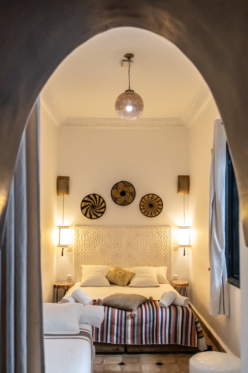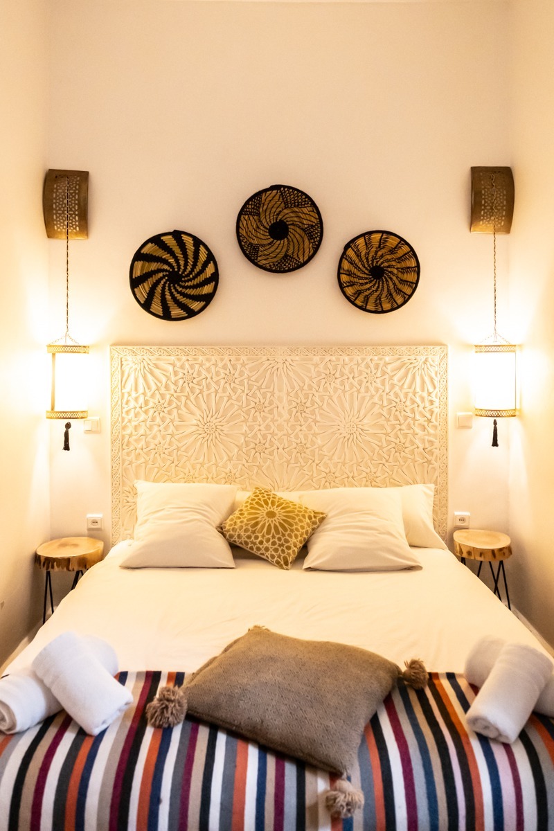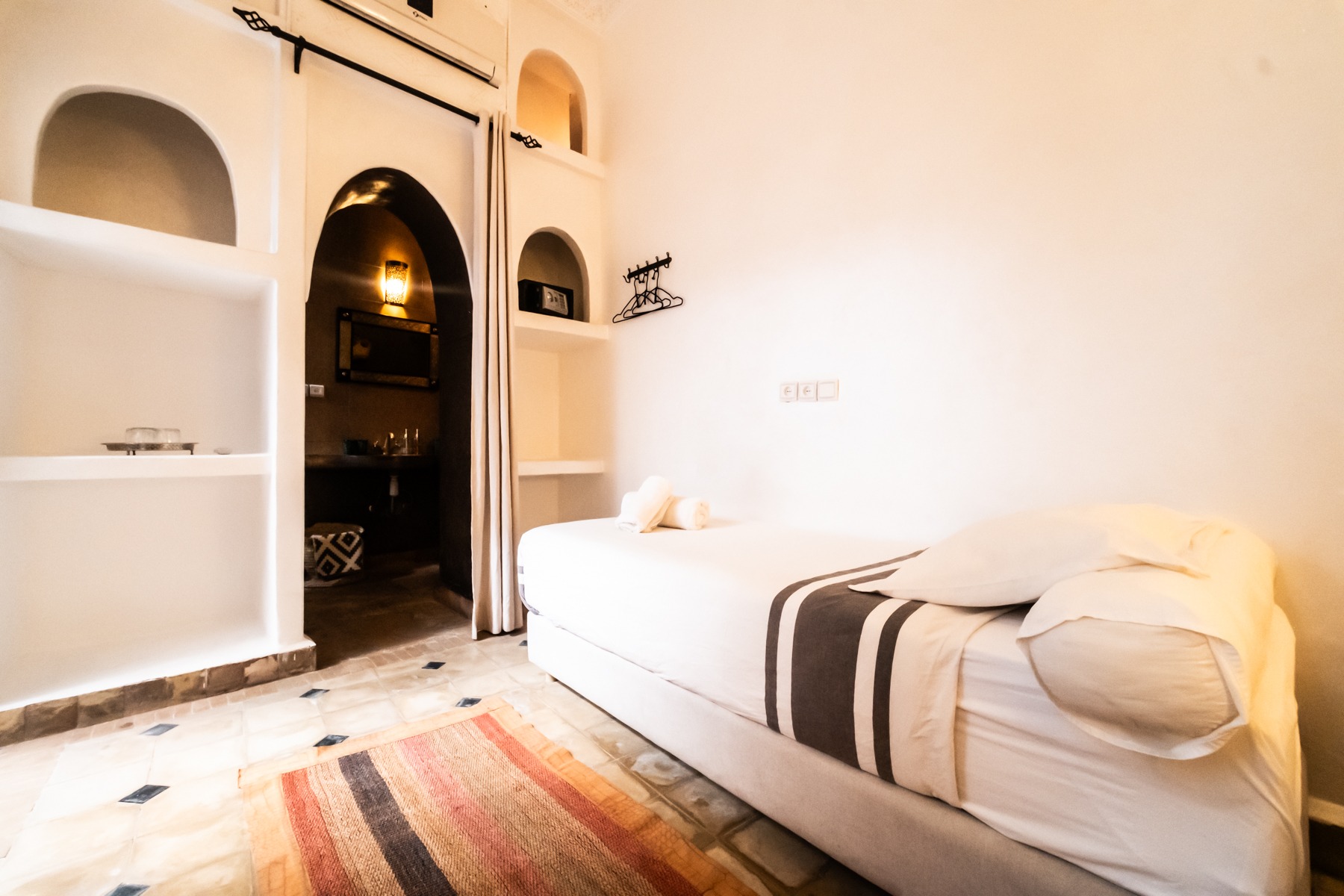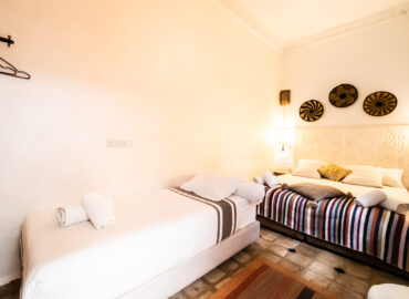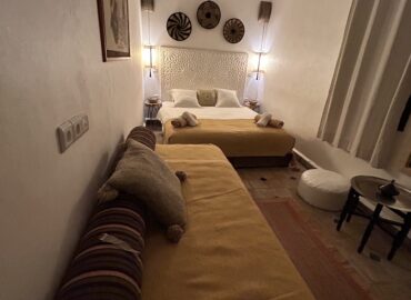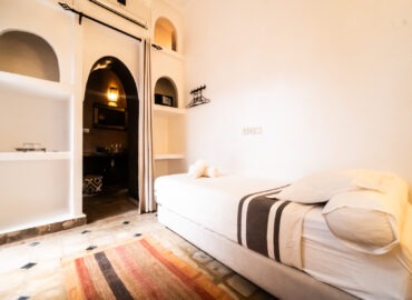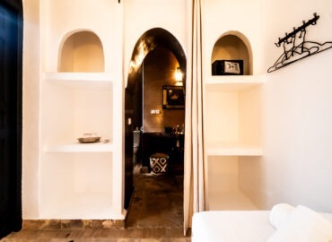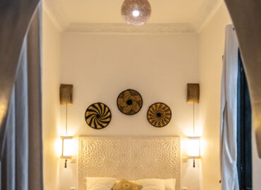 Située au rez-de-chaussée du Riad Étoile Ocre, La Chambre Abou Nouwas est une mini suite élégante décorée dans des tons apaisants de marron et de blanc. Elle offre un grand lit double. Idéale pour un séjour reposant, cette chambre est équipée de la climatisation, du chauffage, ainsi que de la connexion Wi-Fi pour répondre à vos besoins. Des rangements et un coffre-fort sont également à votre disposition pour assurer la sécurité et le confort de vos effets personnels. La salle d’eau, en Tadelakt, comprend une douche-baignoire à la marocaine, vous invitant à vivre une expérience authentique et relaxante. Vous y trouverez également des produits de toilette et des serviettes, pour un moment de bien-être ultime. Cette chambre, à la fois moderne et traditionnelle, est idéale pour une escapade à Marrakech, offrant confort et sérénité tout en étant à quelques pas des principales attractions de la ville.