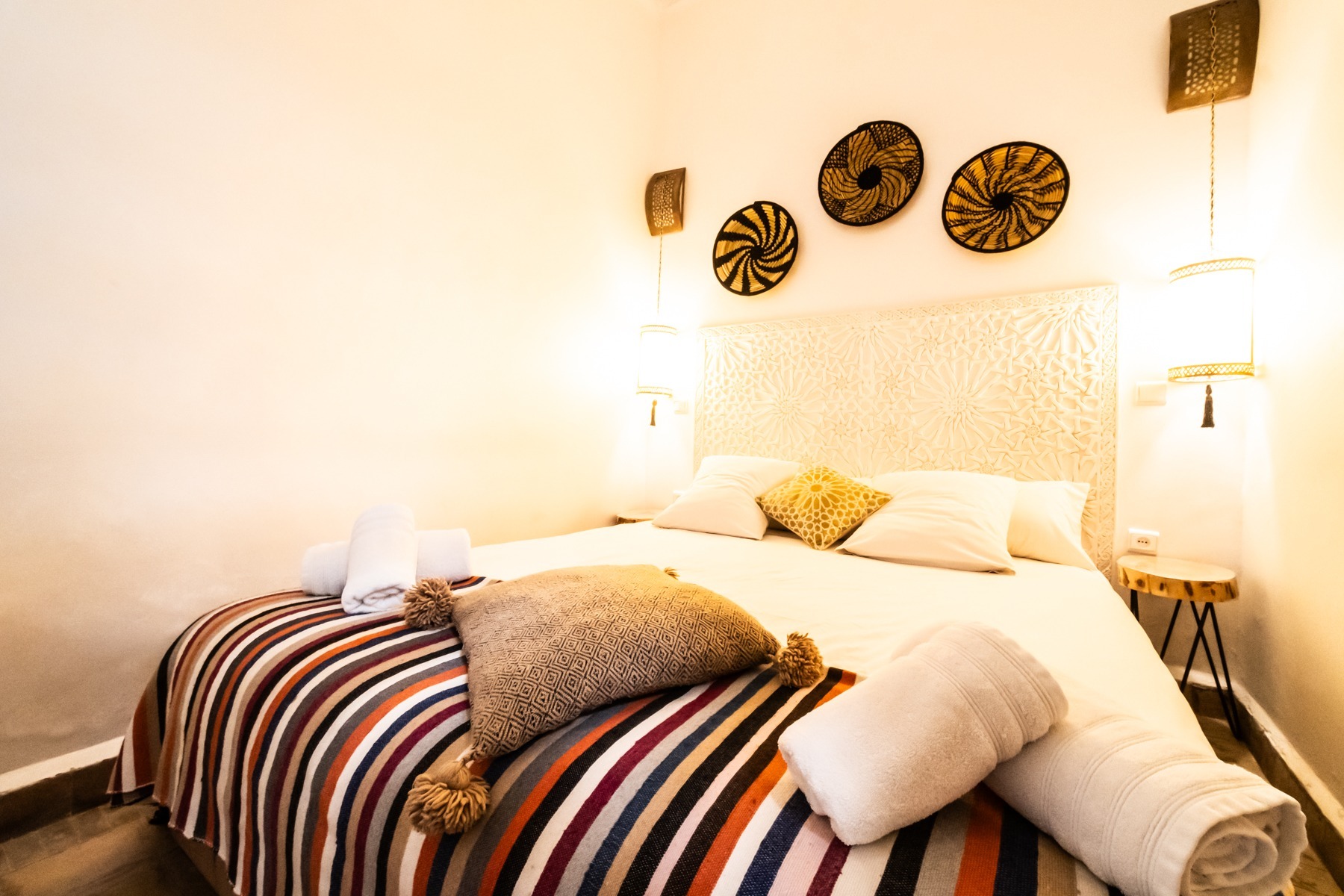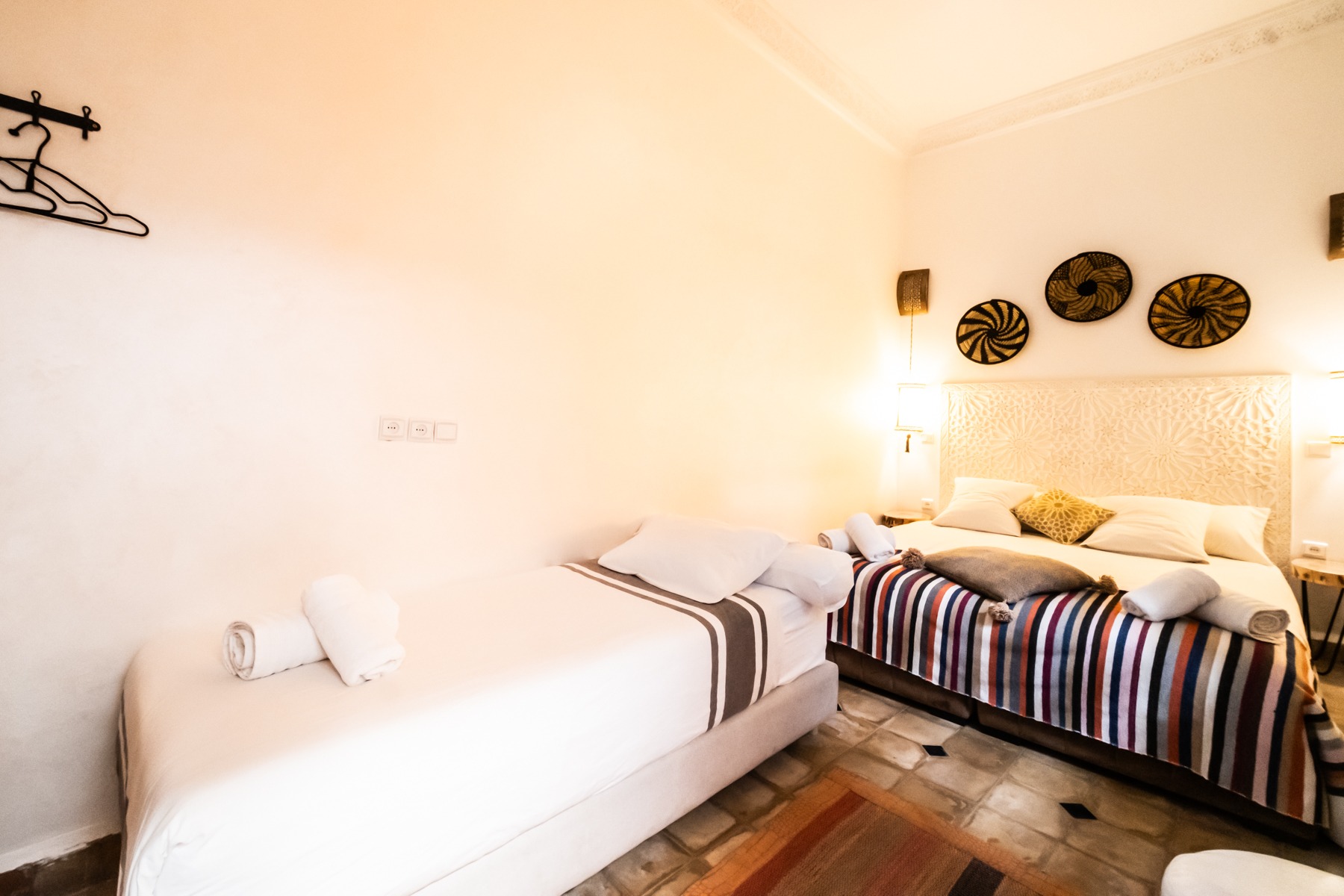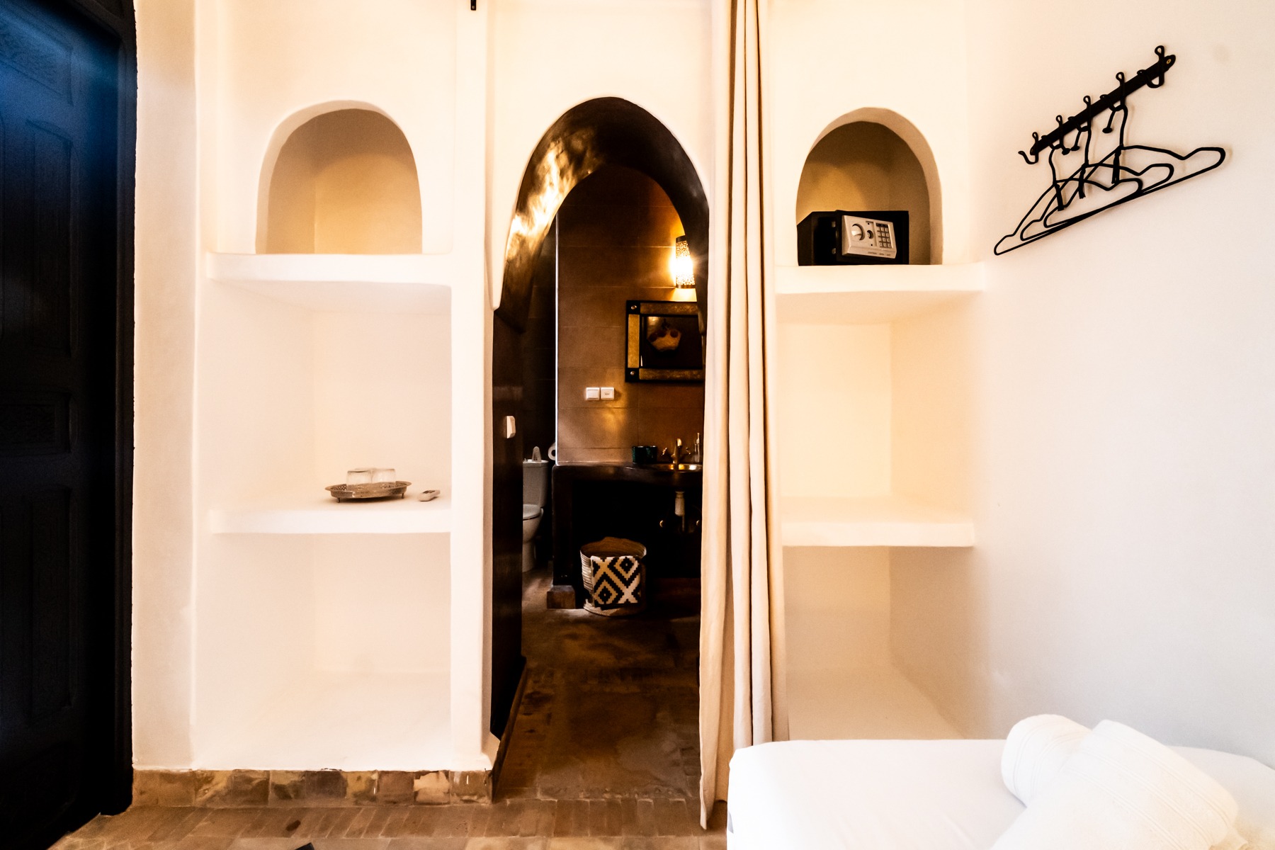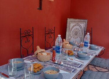 Située au rez-de-chaussée du Riad Étoile Ocre, La Chambre Abou Nouwas est une mini suite élégante décorée dans des tons apaisants de marron et de blanc. Elle offre un grand lit double. Idéale pour un séjour reposant, cette chambre est équipée de la climatisation, du chauffage, ainsi que de la connexion Wi-Fi pour répondre à vos besoins. Des rangements et un coffre-fort sont également à votre disposition pour assurer la sécurité et le confort de vos effets personnels. La salle d’eau, en Tadelakt, comprend une douche-baignoire à la marocaine, vous invitant à vivre une expérience authentique et relaxante. Vous y trouverez également des produits de toilette et des serviettes, pour un moment de bien-être ultime. Cette chambre, à la fois moderne et traditionnelle, est idéale pour une escapade à Marrakech, offrant confort et sérénité tout en étant à quelques pas des principales attractions de la ville.